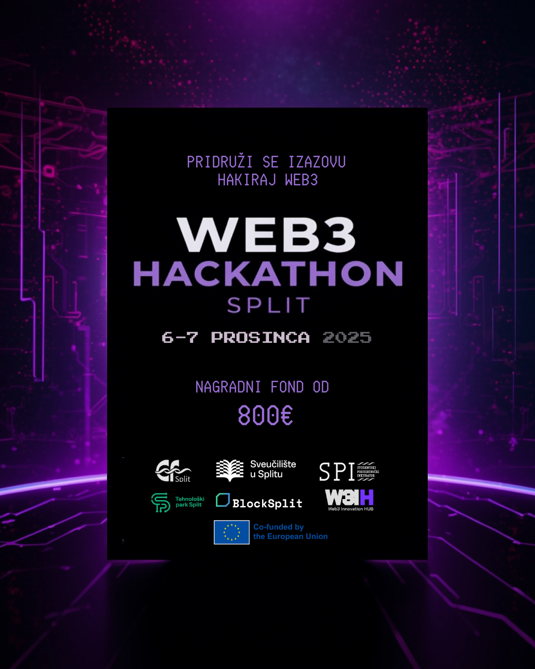 Studentski poduzetnički inkubator Ekonomskog fakulteta u Splitu organizira Web3 Hackathon, dvodnevno studentsko natjecanje koje će se održati 6. i 7. prosinca 2025. u Tehnološkom parku u Splitu.